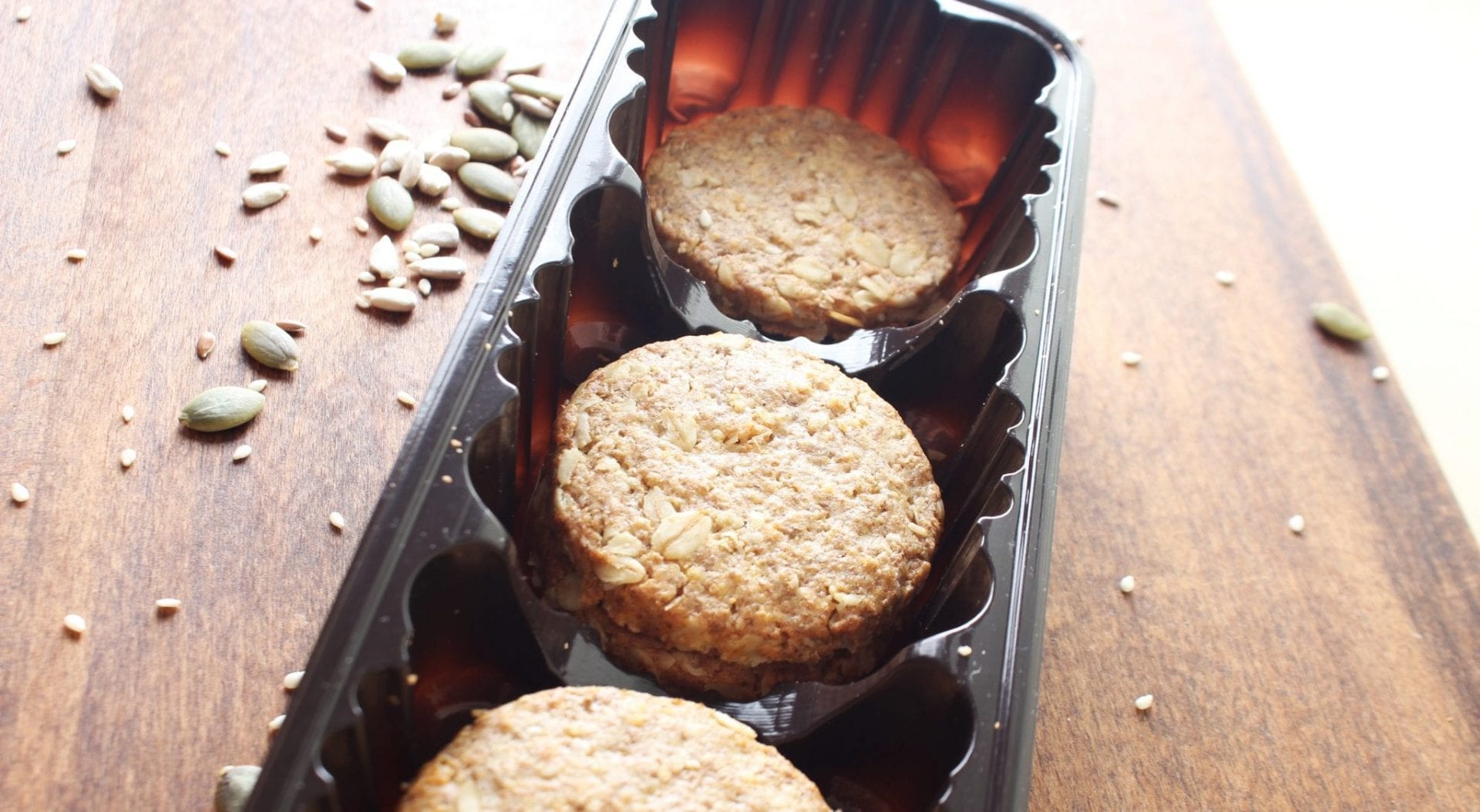 The tray and product conveyors are both on a declined angle to create the maximum parameters for efficient transfer of the biscuits into the tray cells.
