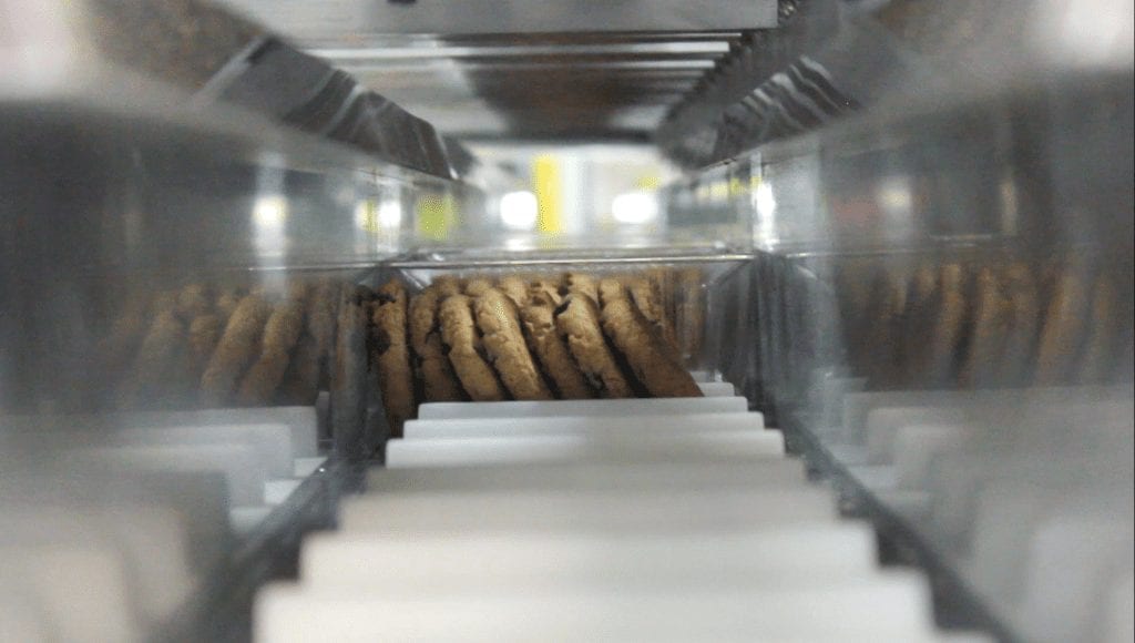 Our system is adaptable for products with different sizes and diameters. Any style and size of cookie you can think of, including wire cut, die cut, rotary molded, enrobed, sandwiched items, and much more!